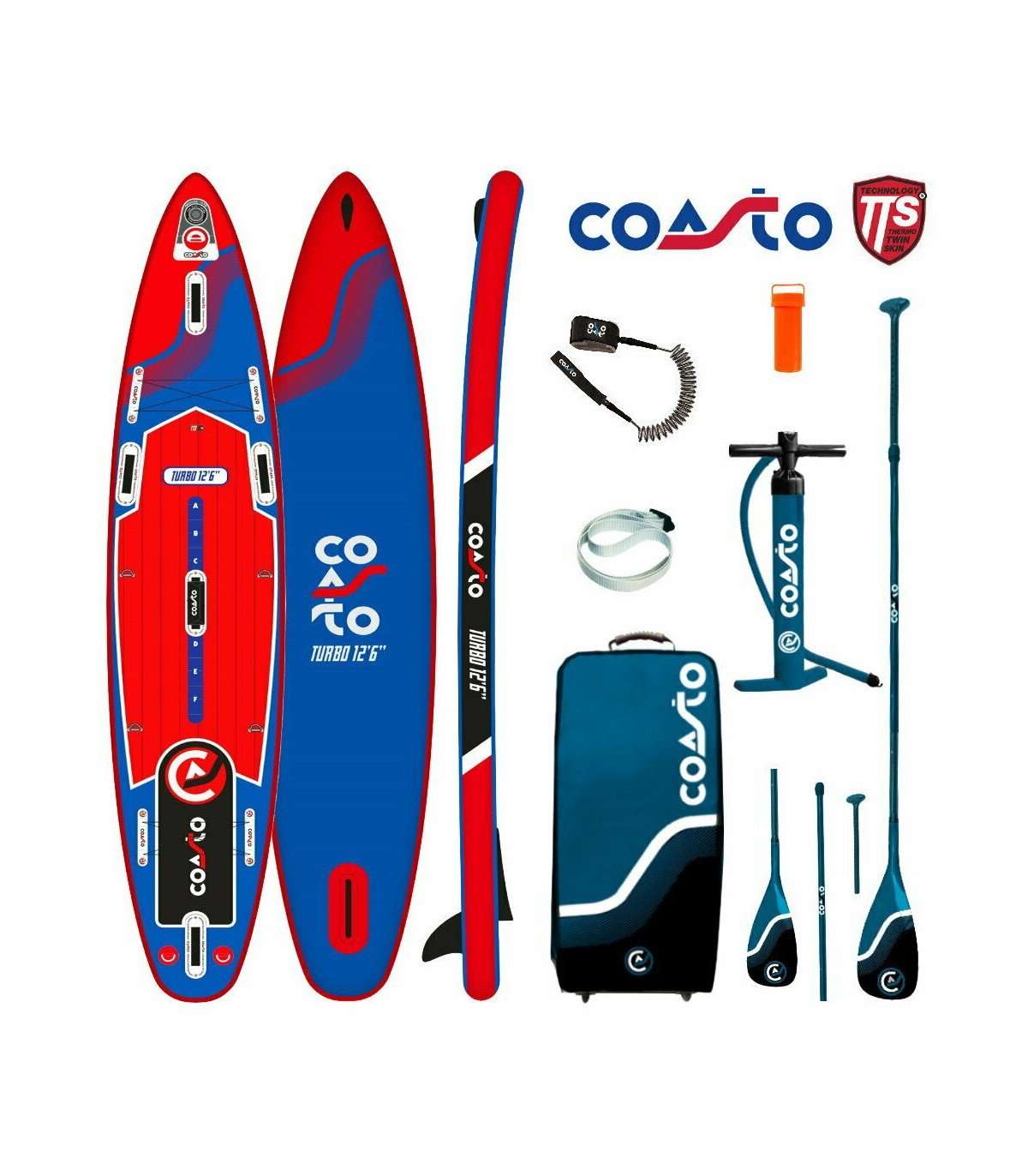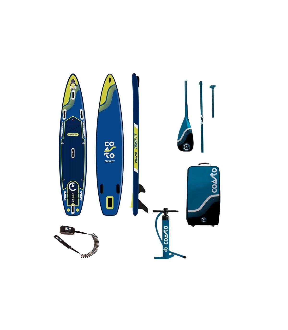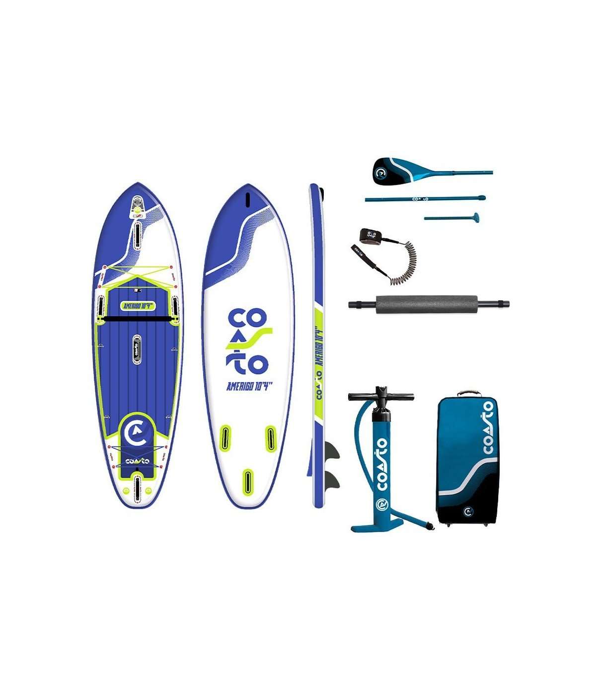 Incluido en todas: Bomba de doble acción/Paleta 165 – 215cm/Mochila con ruedas/Correa extensible/Kit de reparación