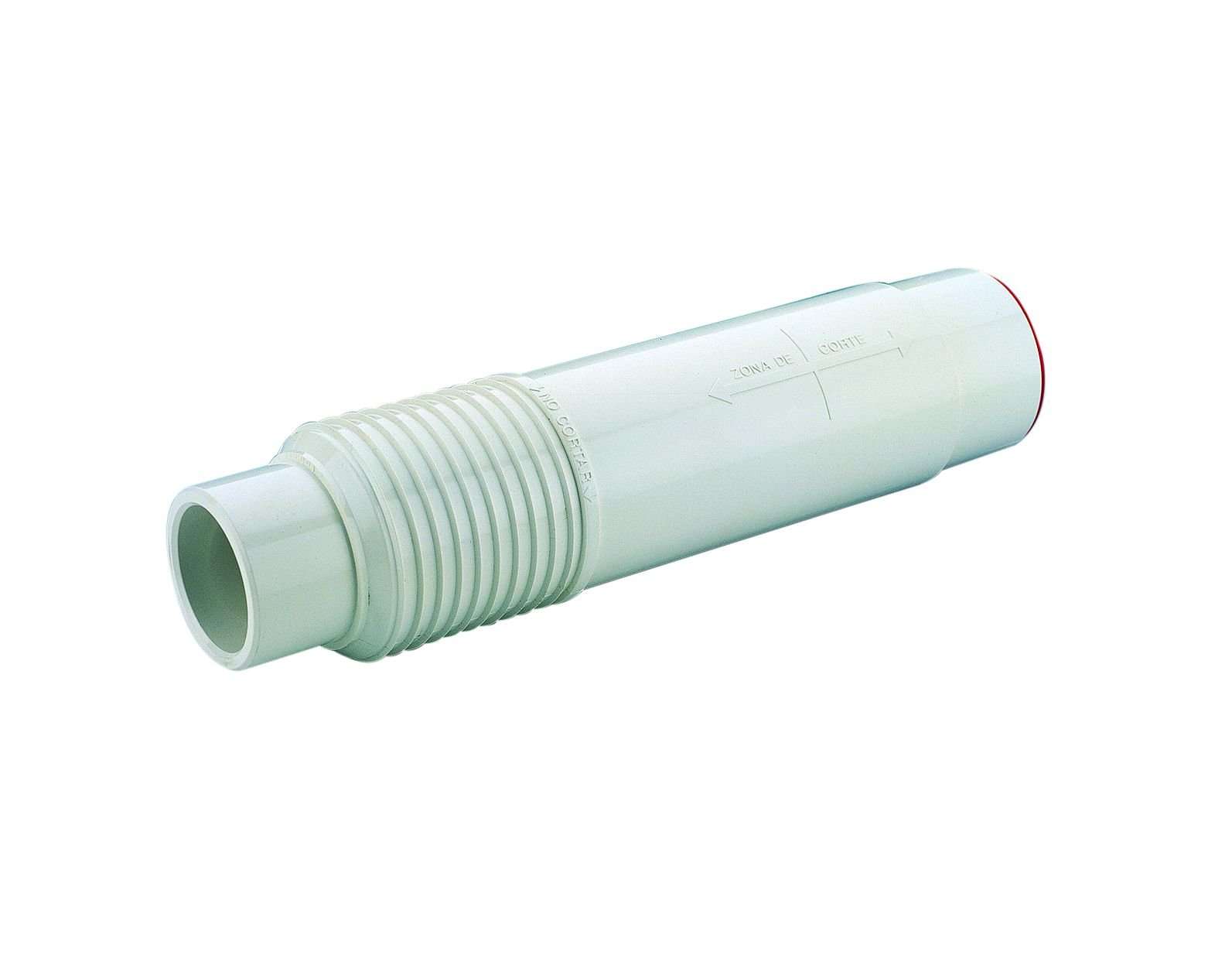 Tubo con el diámetro ajustado para poder encolar boquilla de fondo oscilante. Conexión a tubería para ø 50 mm por el interior y ø 63 mm por el exterior.